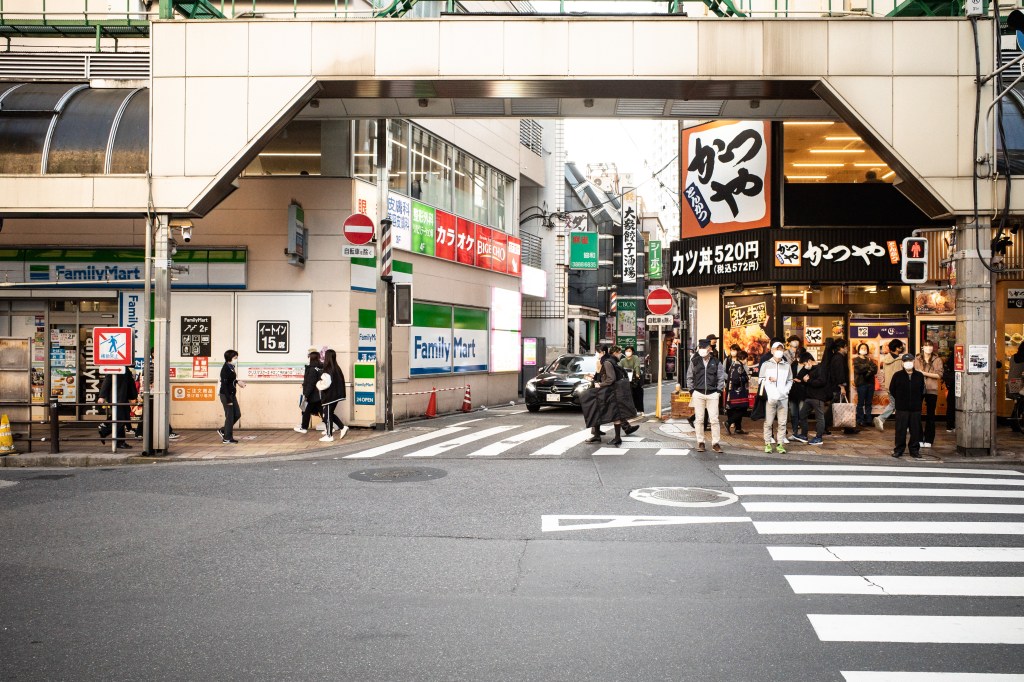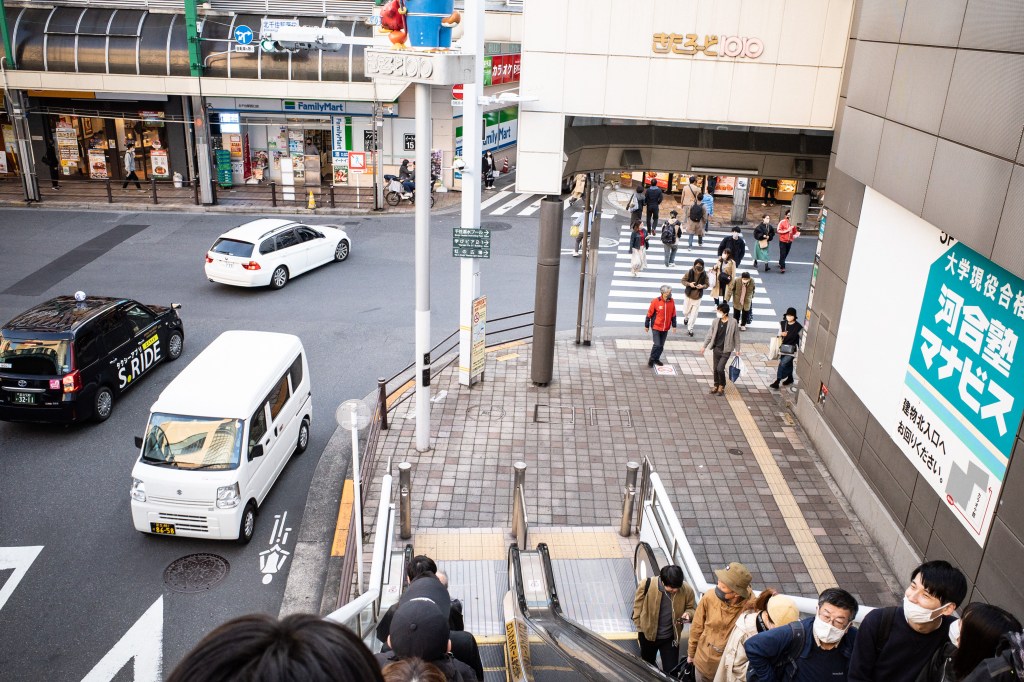 エスカレーターを降りた先の横断歩道を渡ってください。